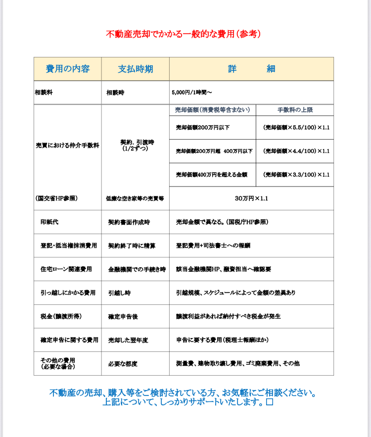 - 不動産売却でかかる一般的な費用